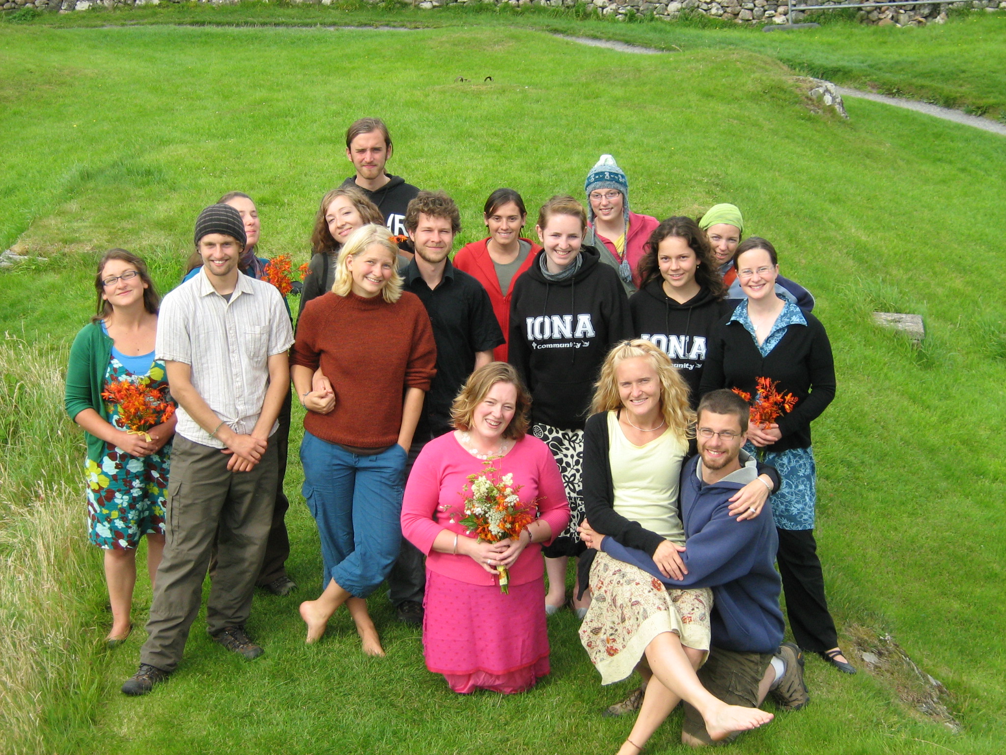 The ceremony happened on the mound in front of Iona Abbey. Josef, my best man, and I waiting patiently at the top. Adam, the vicar and tailor for Michelle’s dress, then joined us. Dot, the flower girl, began the bridal procession. The bridesmaids, Kate, Emily and Amy emerged from the Abbey. Mrs. Turkadactyl followed with her new mom and dad, Sofia (MacLeod Centre volunteer) and Tim. Amy also played the role of florist. Amy, a MacLeod Centre vollie from Canada was our photographer.