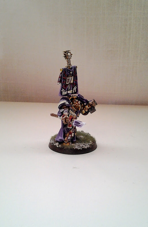 I bought a couple of extra Drago models with the purpose of using the model for the Grand Master. I changed out the arms for a halberd and storm bolter from a pewter Grey Knight Terminator. Sadly the tournament never happened but at least I got the model painted up. Too bad about the tournament. Last years was the most enjoyable tournament I have participated in. It was restricted to 16 players and the best general category was taken out. It was a relaxed atmosphere and everyone had a blast. Roy, owner of Thunderground Comics in St. Albert is ace and was a fantastic host.