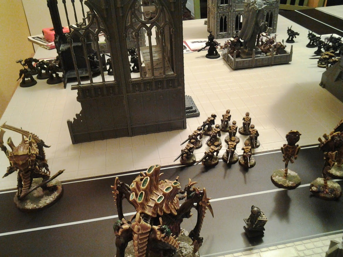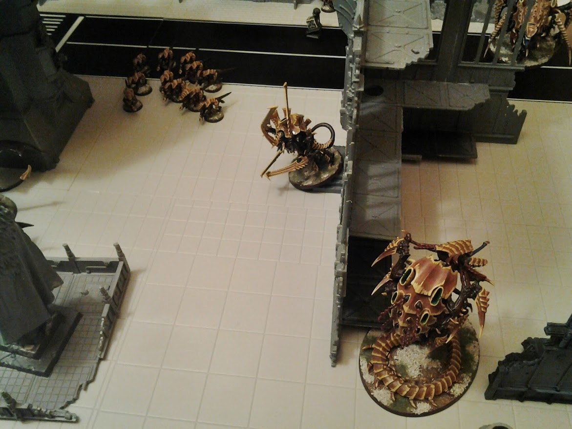 The Flyrant casts Psychic Scream and the Librarian and Dreadknight pass the leadership tests. The Swarmlord casts the Horror and it is not successful.