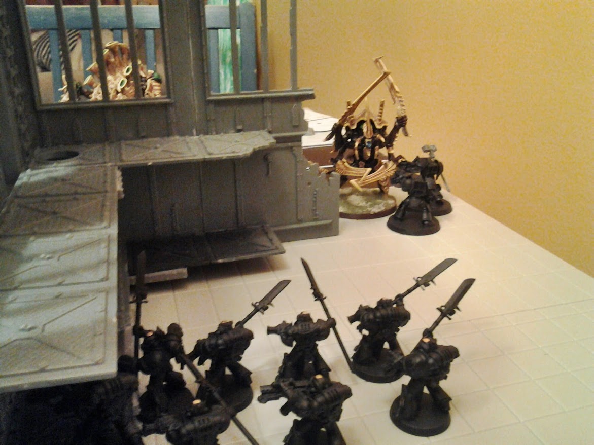 Keith used to play 40K but dropped out at 4th edition and traded his models for Fantasy. He has remained exclusively with Fantasy since. I have more than enough models to go around so he borrows my models to play a game. Keith likes the Grey Knights, Tyranids and Space Wolves so lucky for him I own two of those armies. We ended up playing the Eternal War: Crusade mission.