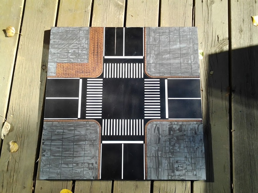 I have completed the next step to finishing the Games and Gears Hawk Urban Battle Boards. Each tile has been shaded- grey concrete with Nuln Oil, grass with Coelia Greenshade, and the brick with Agrax Earthshade. The Nuln Oil looks streaky but I have confidence that it will not be an issue when the project is complete.