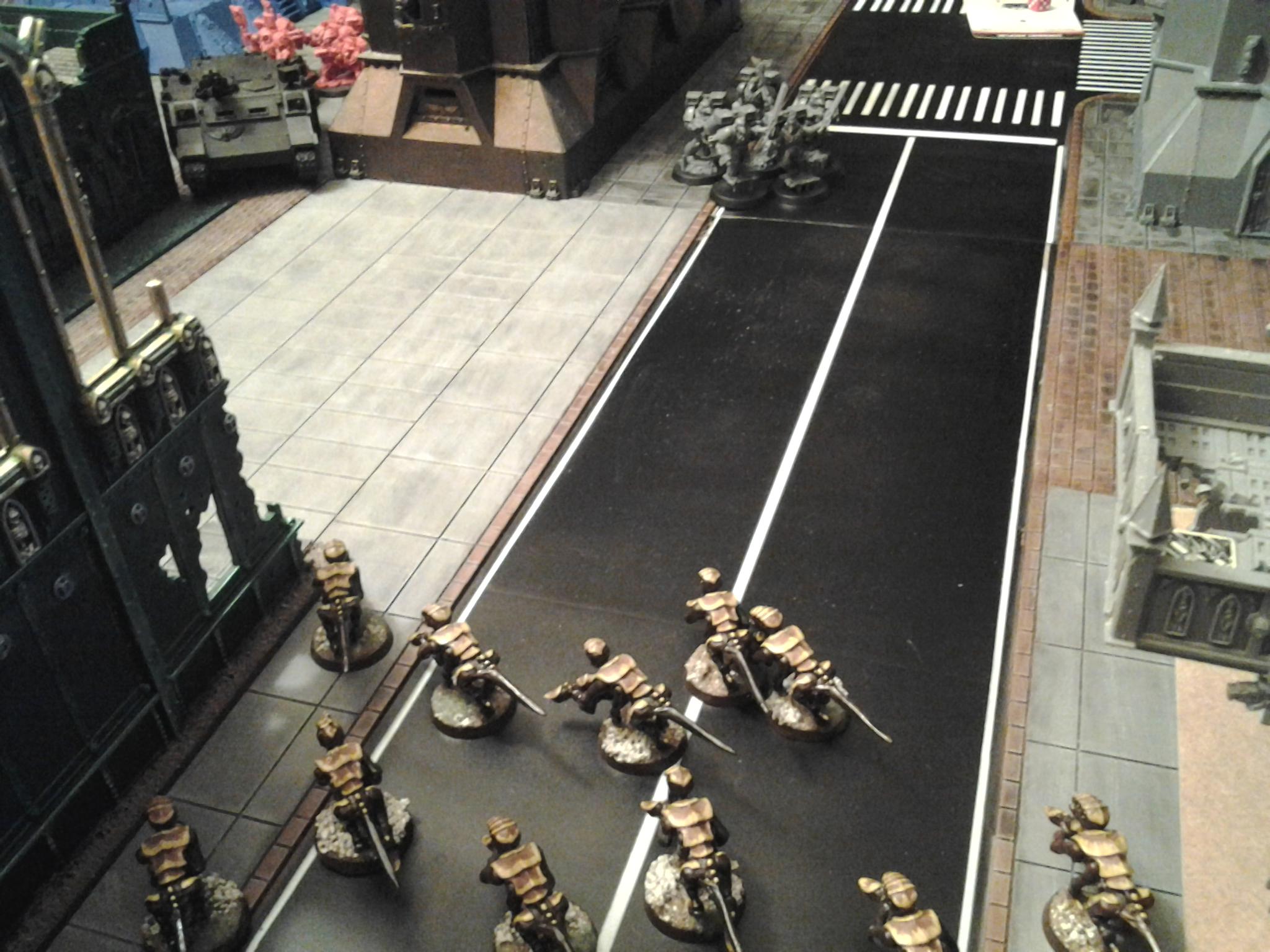 The Gargoyles and Tactical Marines continue their slug fest. Each unit has sustained casualties and a victor will emerge soon. The Tactical Marines realize the fight has to end soon because the two remaining Warriors approach but they can’t finish the Gargoyles off.