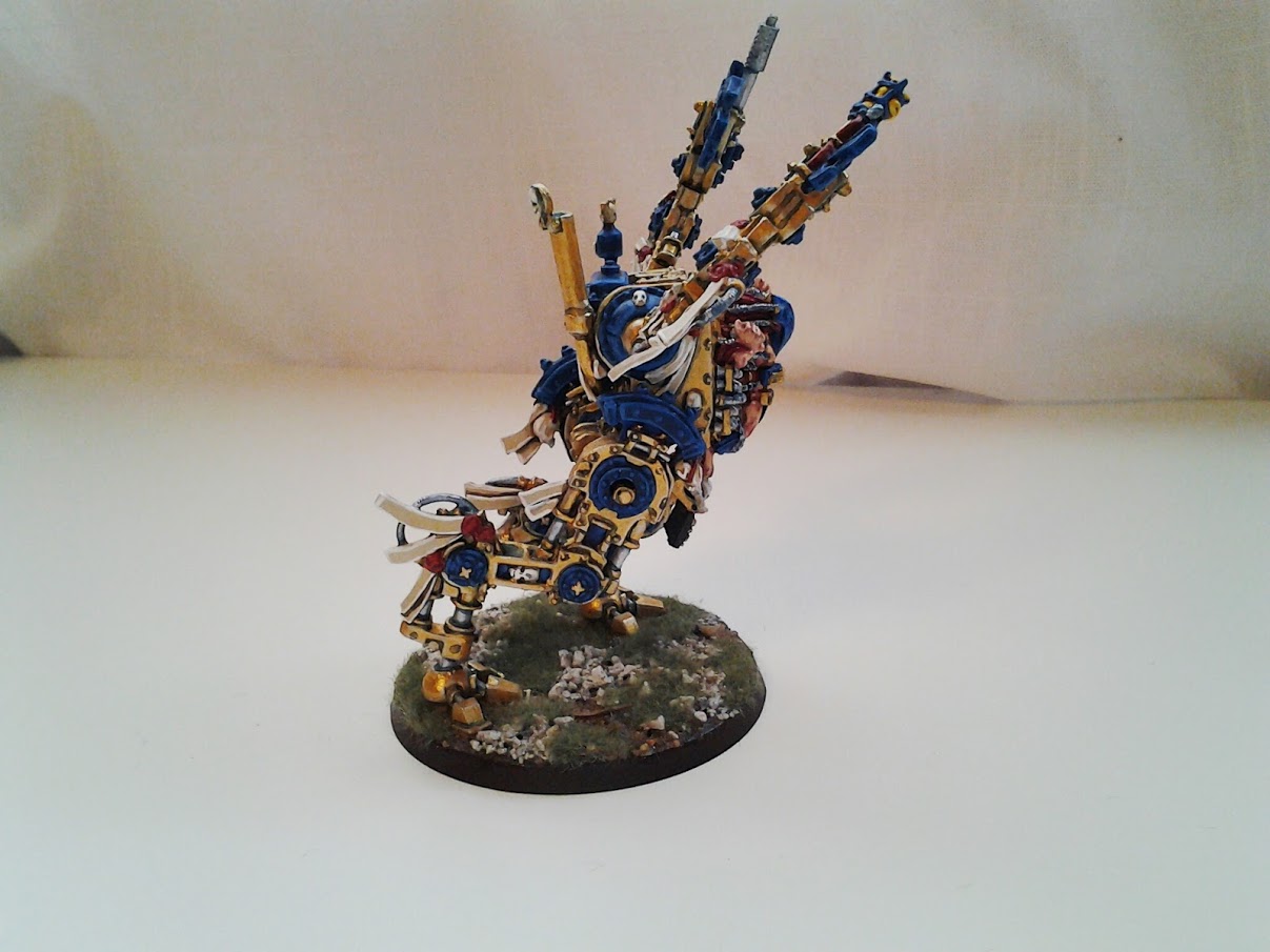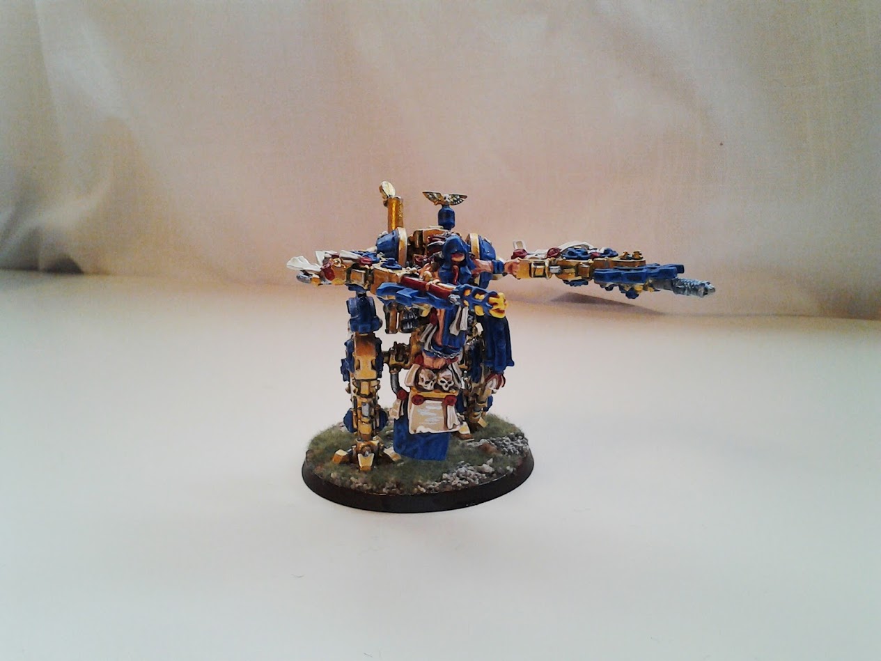 Here is a comparison to my painting standards when I first started the army. They is a noticeable lack of blending and highlights. The gold was drybrushed and duller. When I revisited the Sisters I wanted the gold to pop out more and I wanted the blue to be a lighter shade. I took more time to shade the recesses as well as highlight the gold too to cool it down. I am pleased with the new look.