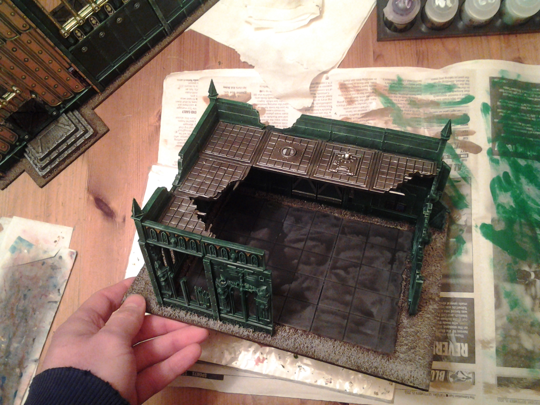 I needed a break from grey power armour. I have a bunch of Cities of Death buildings assembled so it’s about time I start to paint some up. Miniwargaming was selling their Army Painter product for really cheap so I stocked up on primer and used it on the scenery. This was just the break I needed.