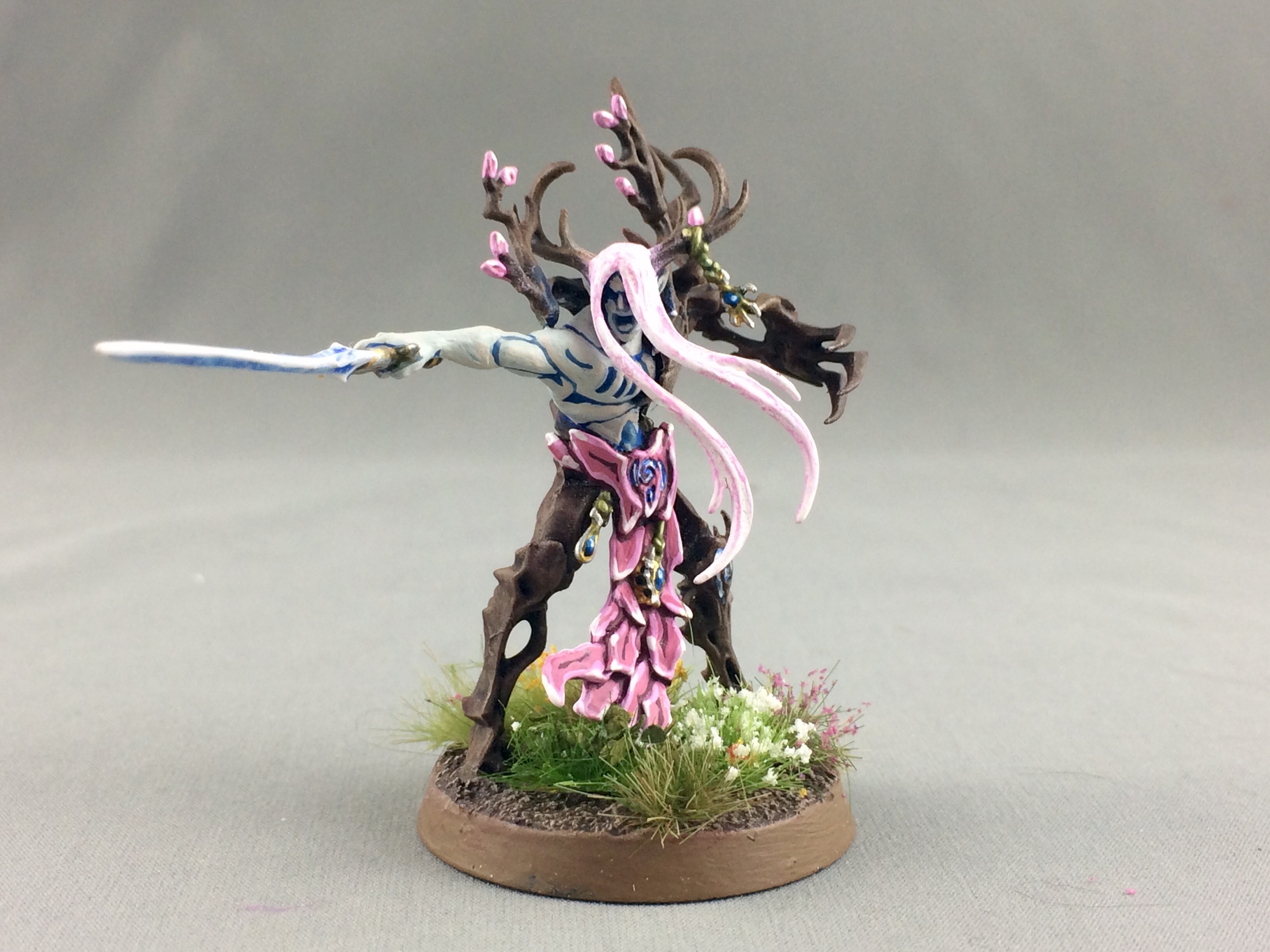 These two models round out the unit. For the hair I dry brushed Changeling Pink over top of white and followed that up with a white highlight. It’s a subtle pink that helps support the cherry blossoms.