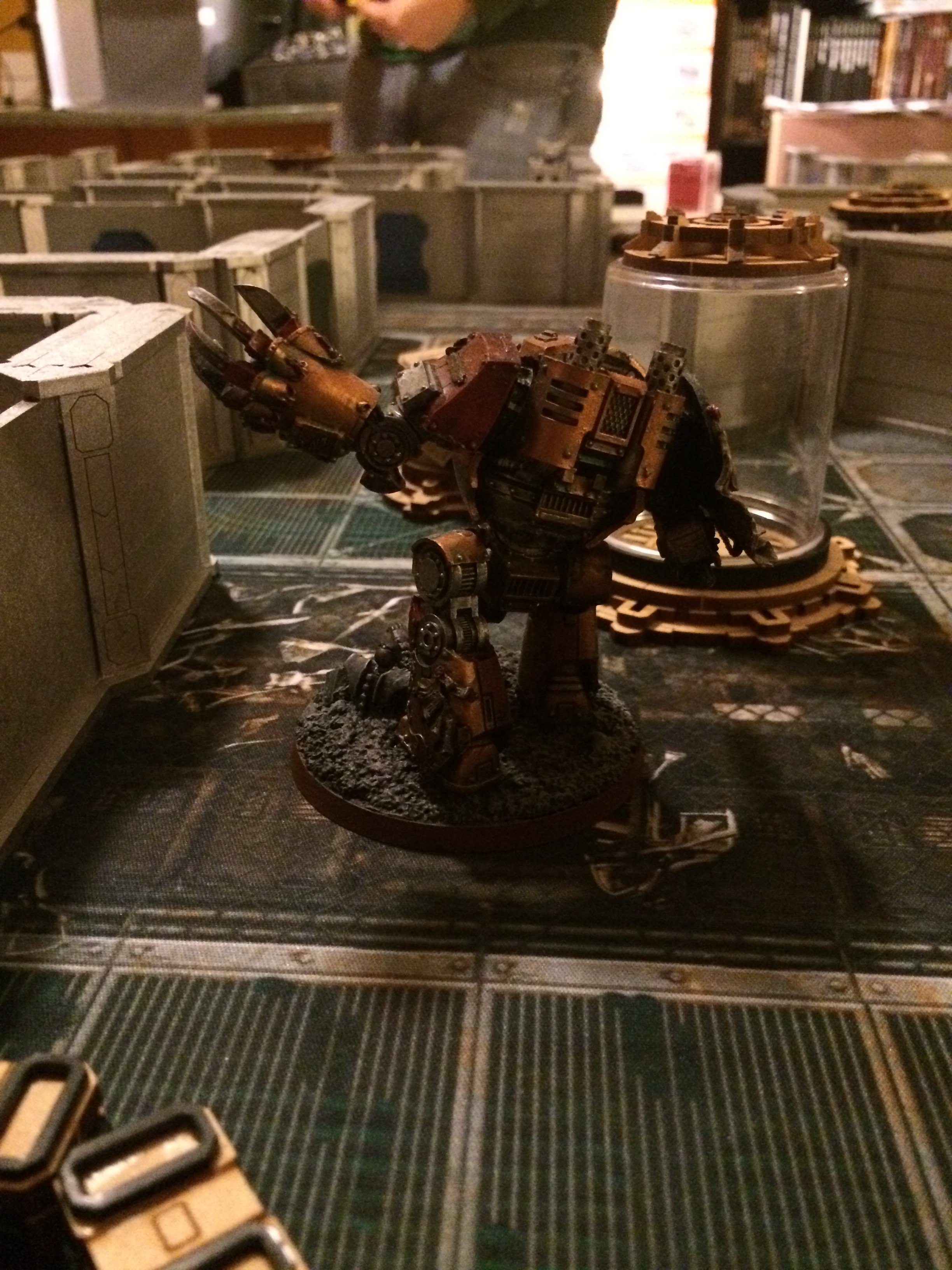 The Furioso Dreadnought opens the door and fires on the Terminators. Moloc saves everything.