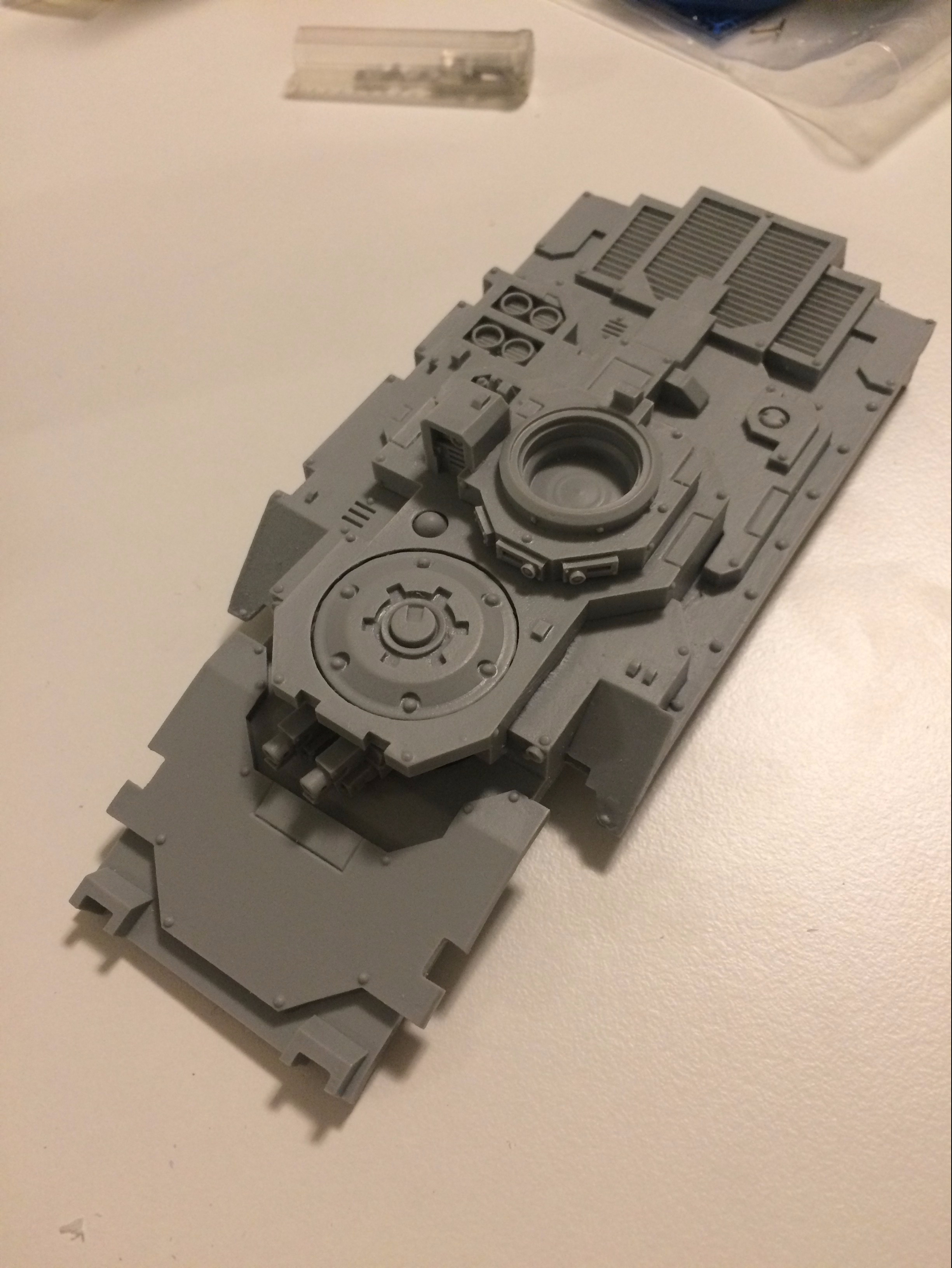 This part was easy. I place the heavy bolter turret into position and then put the top hatch on.