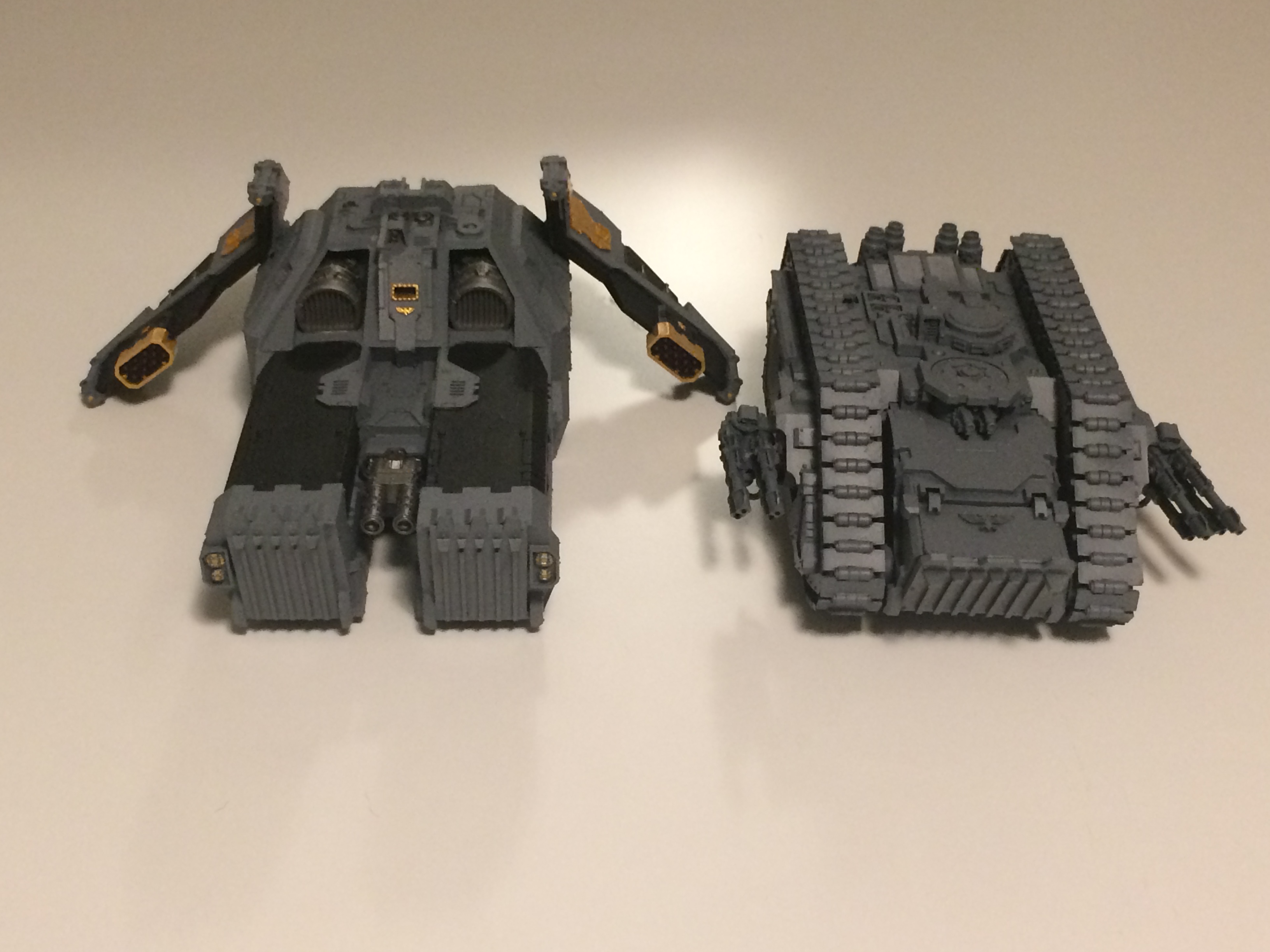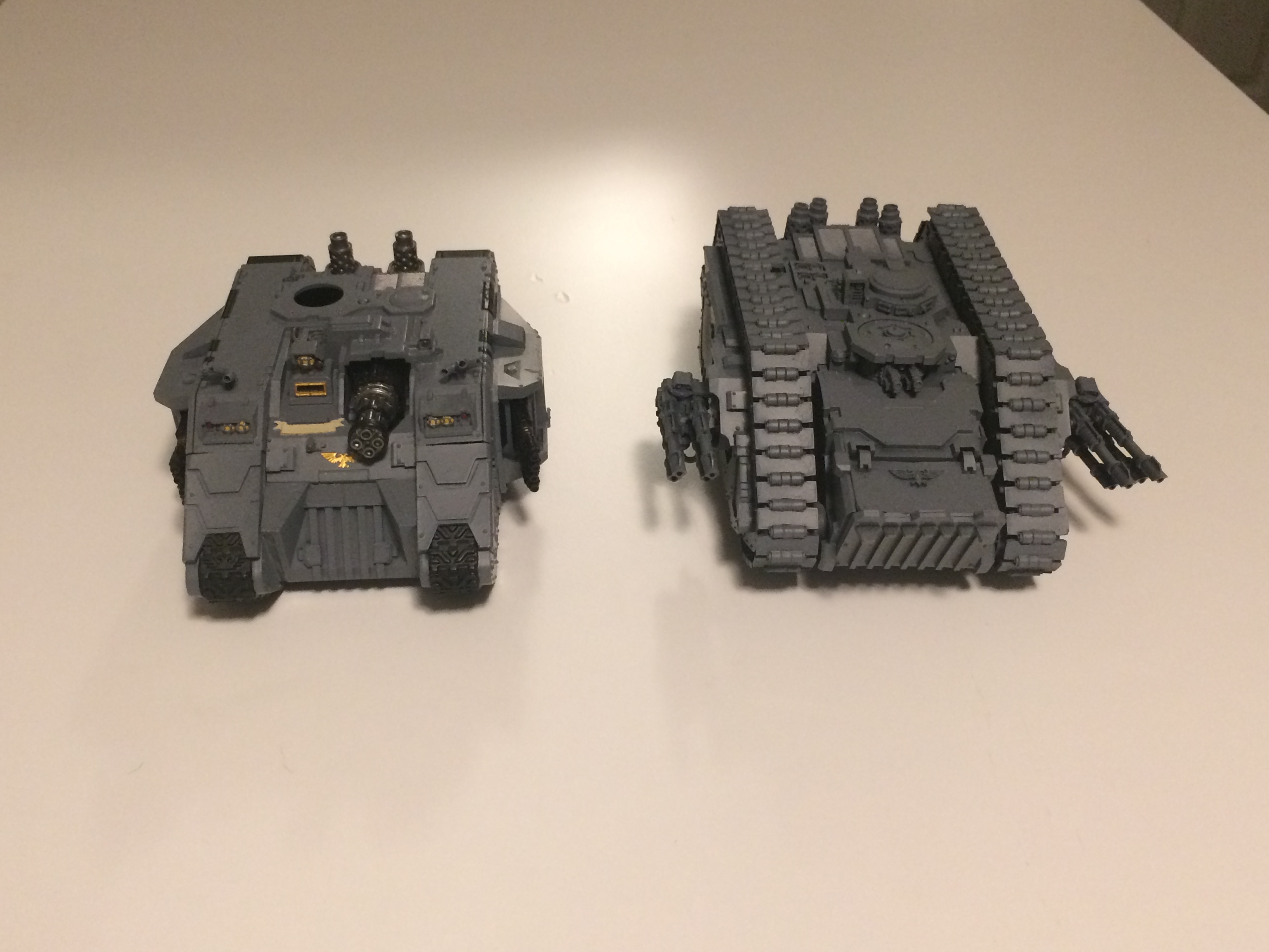 For the first comparison I wanted to see the size difference between the Land Raider Achilles with the Spartan Assault Tank.  As you can see the mighty Land Raider is not that far off in size.  For a super heavy tank it’s not that much bigger.  I was able to get the base colours down on the Land Riader fairly quick so I’m feeling good about achieving my goal.