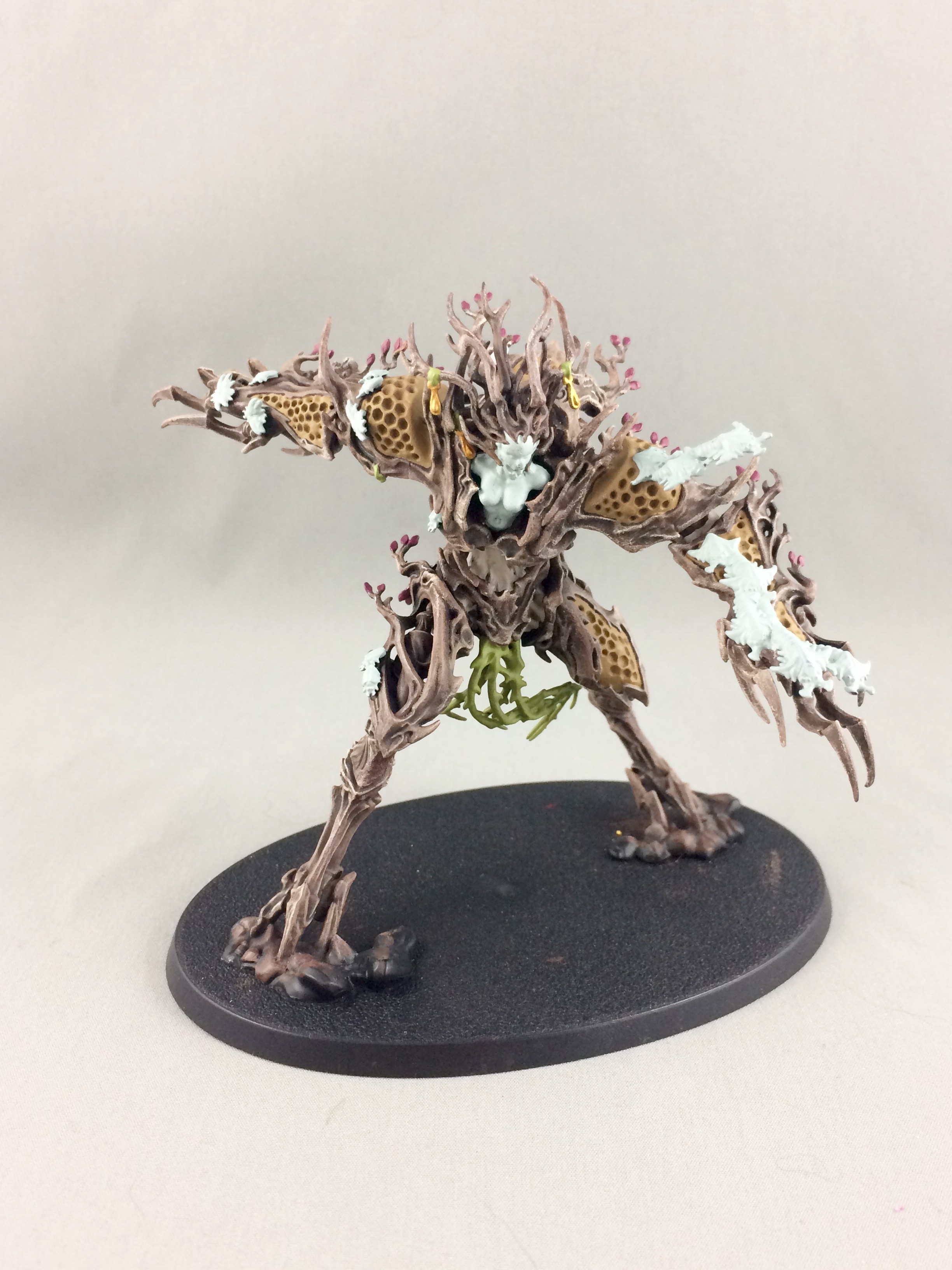Welcome to #MonsterMarch, a painting challenge issued by Swordmaster from Path of an Outcast. The idea is assemble and paint a monster during the month of March. I assembled Drycha back in January and it’s time to paint her up. I’m really looking forward to working on this model. The Sylvaneth is a great looking line and Drycha is no exception. The part that interests me the most is the honeycomb. I think it will look sharp with a brown bark so let’s have a look at some photos.